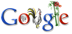 Google的关于中国新年的图标。有代表节节高的竹子,有代表喜庆的灯笼,有代表生肖的雄鸡。当然,最有意思的是倒着写的福字了。以前住在郊区平房,小院的门上帖福字、帖春联。大人总是刻意的把福字倒过来帖,意思是讨“福到(倒)了”的口彩。这样的口彩还有不少,吃饺子的时候如果煮饺子煮破了,你就不能说破了,要说“挣”了,预示一年能挣钱发财……呵呵。有一次我骑车路过一家饭店,见上面帖着一张“财”字,是横着帖的,心中一凛:原来这家是要发横财啊,这个口彩倒也是讨得很好。